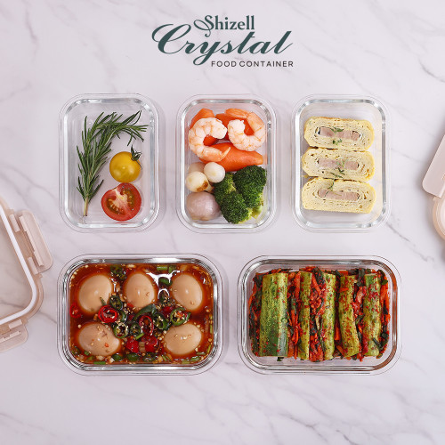쉬젤 크리스탈 내열 밀폐용기 직사각 5종세트 (직사각400ml*3ea+640ml*2ea)+0원